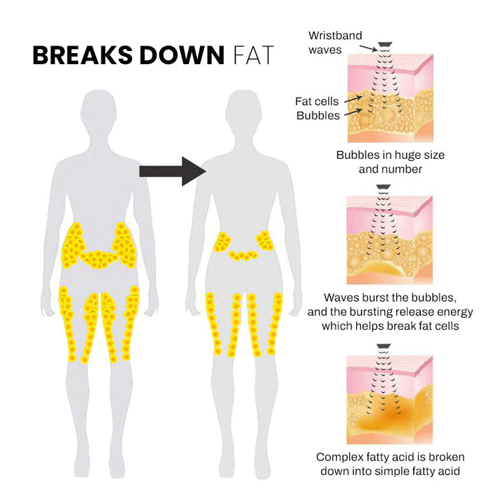 Ultrasonic has the ability to enter the area of fat deposition via the skin and kill specific fat cells. Under the influence of ultrasonic vibrations, the fat cells are broken down and liquefied. Also help blood flows to organs and tissues throughout the body. Through waves which the band emits it helps dissolve blockages (stenosis) and abnormalities like plaque or emboli.